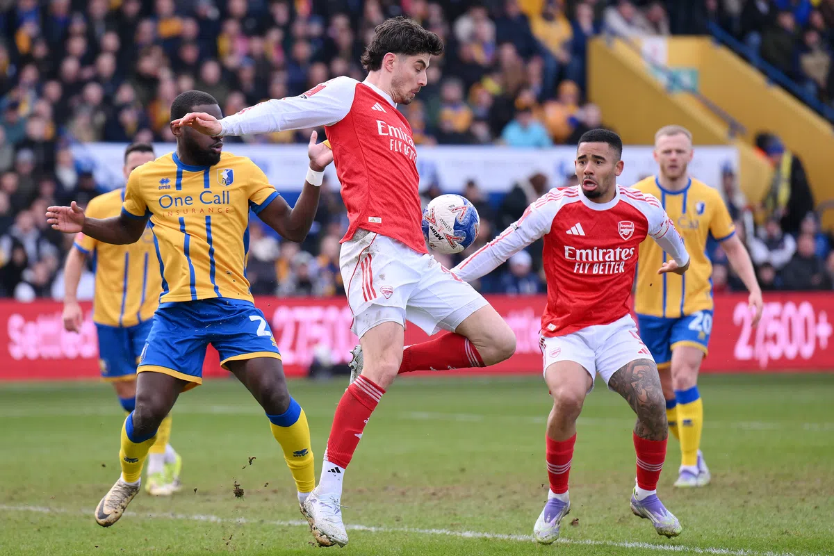 Arsenal heeft het ontzettend zwaar, maar worstelt zich met pijn en moeite langs Mansfield Town Voetbalzone07-03-26 | 15:03