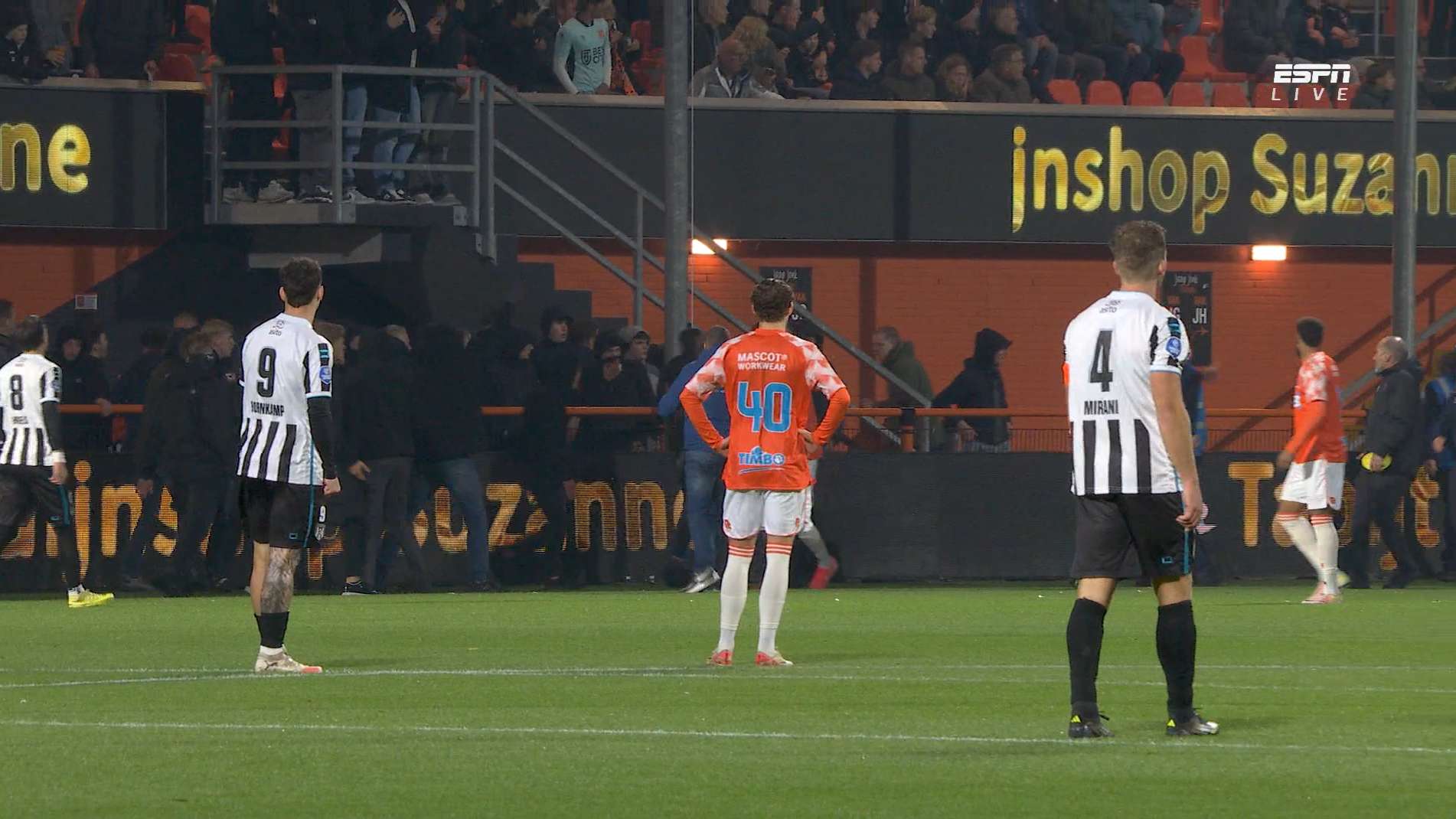Tientallen Volendam-fans razen massaal op uitvak met Heraclieden af, spelers grijpen in Voetbalzone