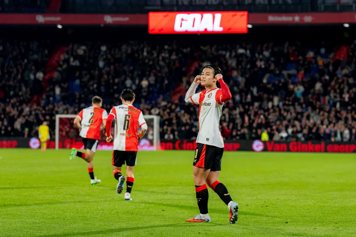 Feyenoord klopt Volendam en herovert koppositie door late treffer Ueda Door de overwinning op Volendam komt Feyenoord op punten gelijk met PSV en herovert het op basis van doelsaldo de koppositie. NOS